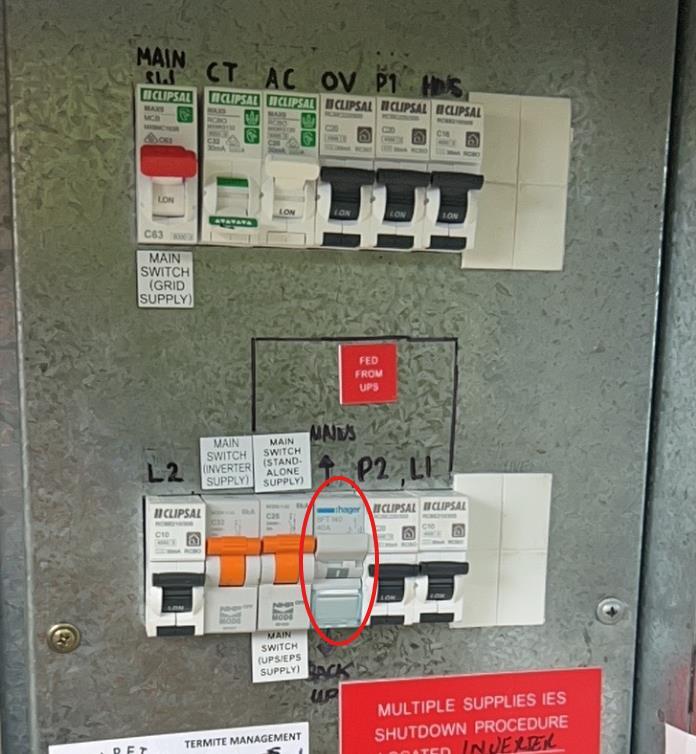 In rural properties, there may be a meter box at the front gate and a separate main switchboard at the house. The changeover switch is usually installed in the same switchboard as the inverter and backup breakers — not necessarily at the front boundary meter box.
